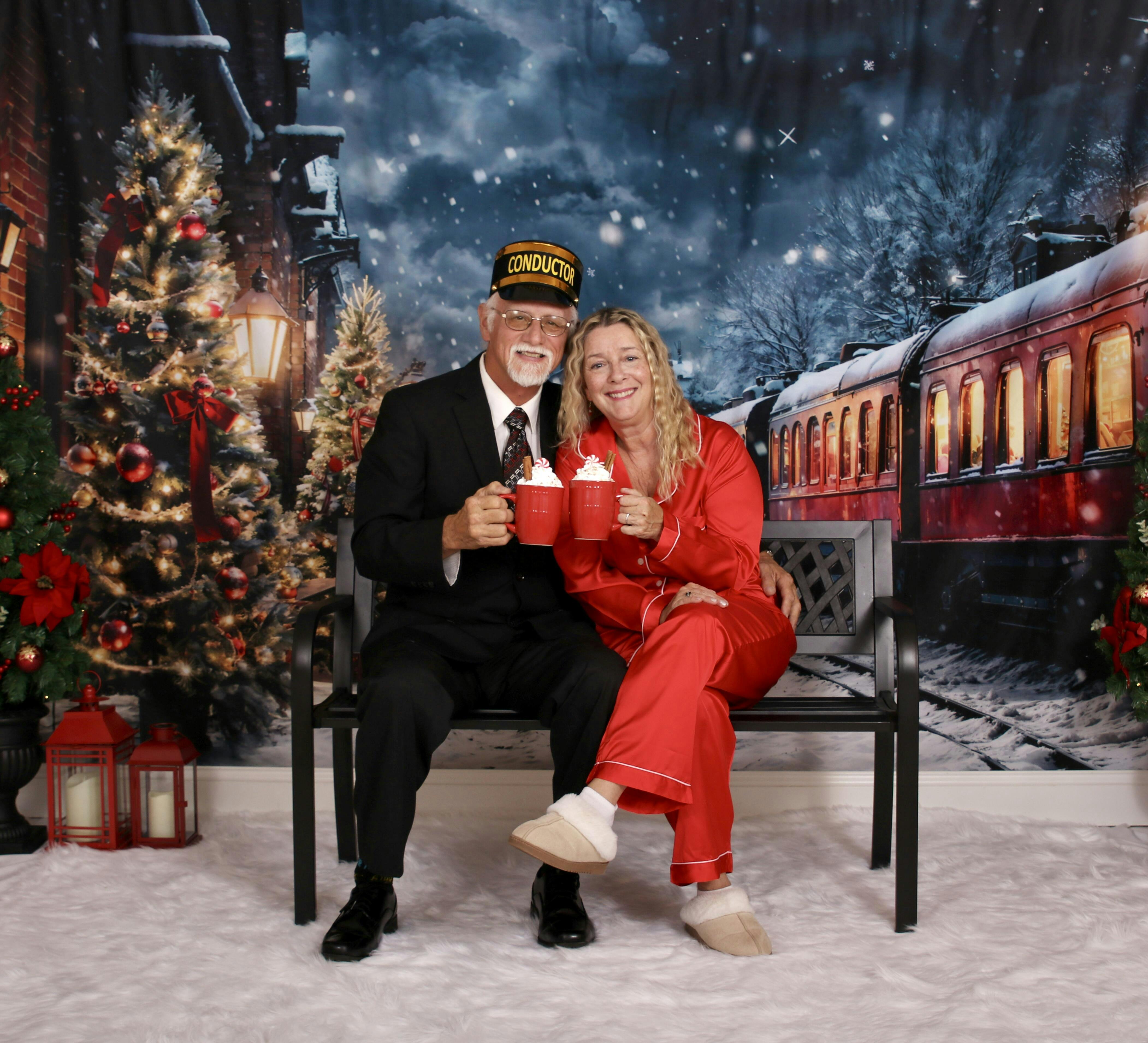 Transform your holiday photos with the Enchanted Winter Christmas Train Station backdrop. Featuring a charming snowy railway scene illuminated by glowing lanterns and festive decorated trees, this backdrop creates a magical atmosphere perfect for seasonal portraits, holiday cards, and winter celebrations.