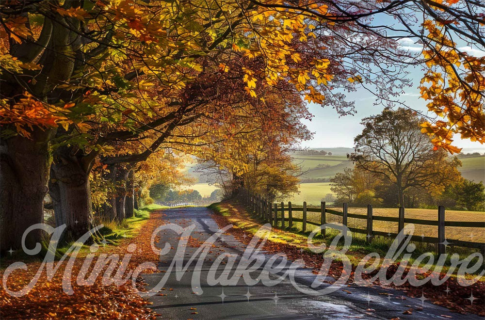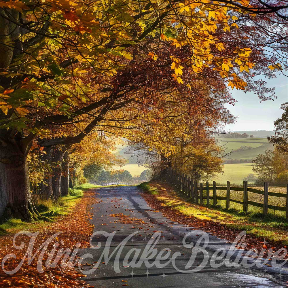 Capture the essence of fall with the Golden Autumn Scenic Road Landscape Backdrop. This vibrant, high-resolution backdrop features radiant autumn foliage and a peaceful rural path, perfect for adding warmth and natural beauty to your photography sessions.