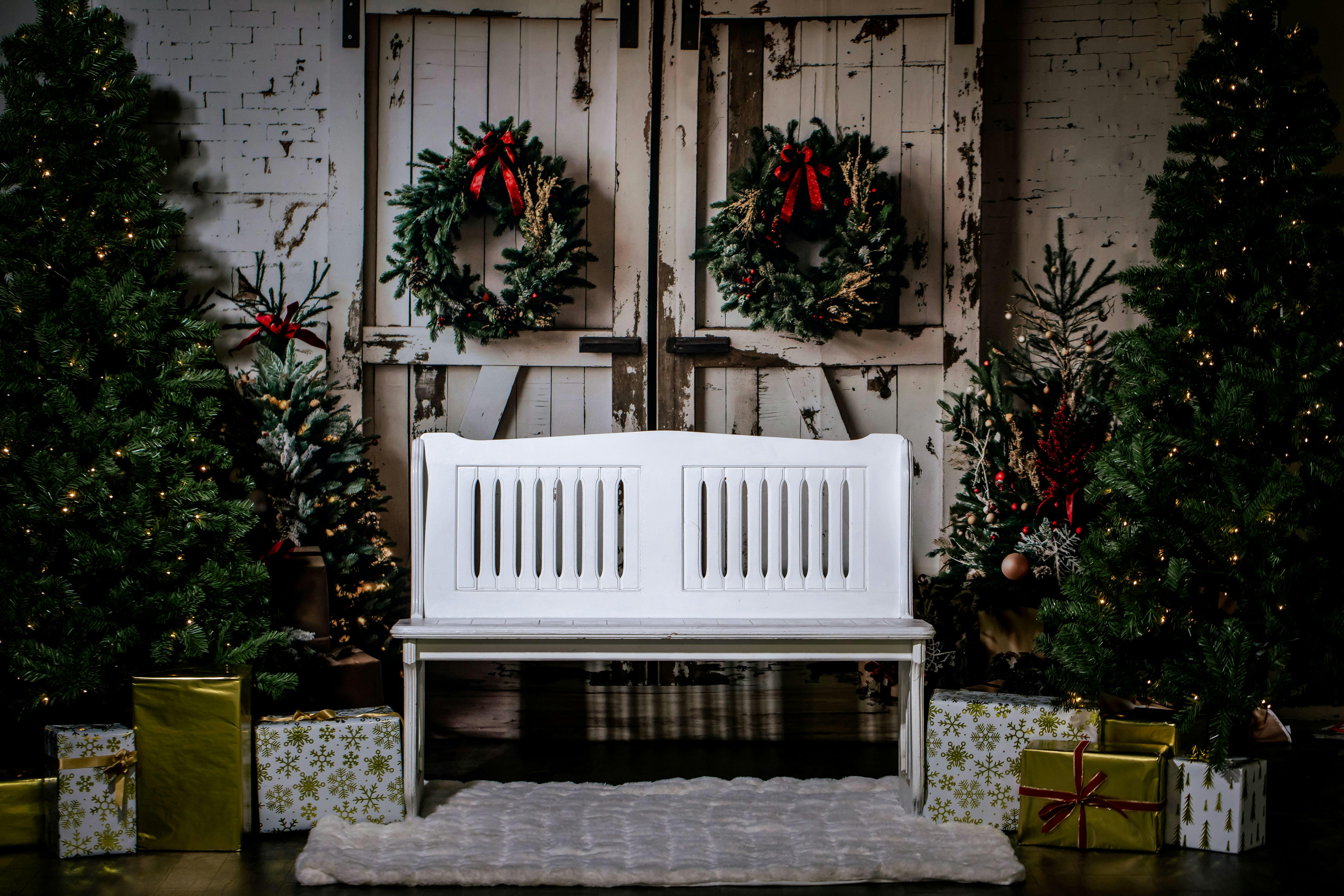 Kate Christmas Tree White Shabby Barn Door Backdrop Designed by Emetselch