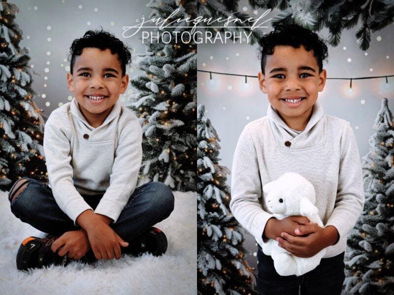 Create a magical festive atmosphere with the Snowy Pine Winter Holiday Backdrop. Featuring snow-covered pine trees and warm glowing string lights, this backdrop sets a cozy winter scene perfect for holiday portraits and seasonal photo sessions.