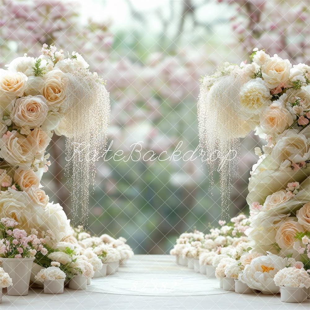 Create timeless memories with the Elegant Blush Floral Wedding Arch Backdrop. Featuring soft blush roses and delicate white flowers arranged in an enchanting arch design, this backdrop is perfect for romantic outdoor or indoor wedding portraits. Elevate your special day with this beautifully detailed floral setting.