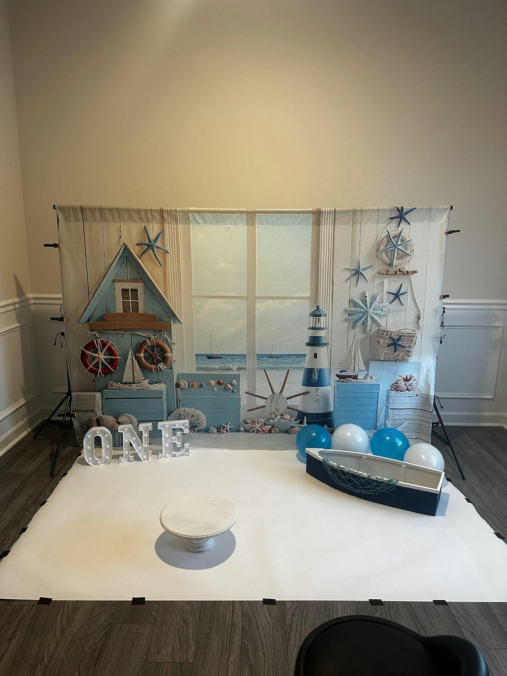 Kate Cake Smash Nautical Beach Lighthouse Starfish Backdrop Designed by Emetselch