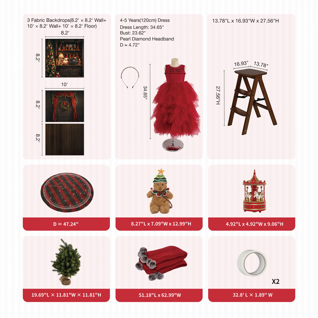 Kate Christmas Living Room Set Photo Kit Photography Backdrops&Props Themed Bundle