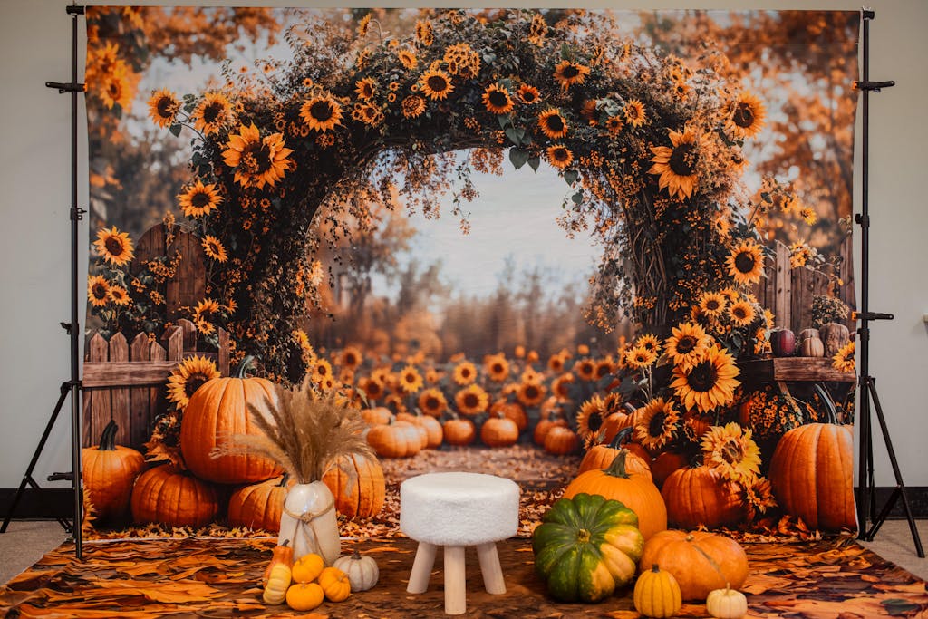 Kate Fall Sunflower Pumpkin Arch Printed Backdrop+Fall Sunflowers Path Floor Printed Backdrop