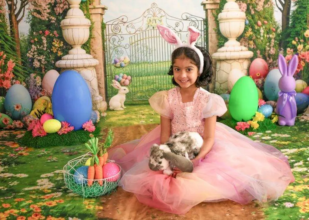 Kate Easter Bunny Colorful Eggs Flowers Arch Printed Backdrop Designed by Chain Photography