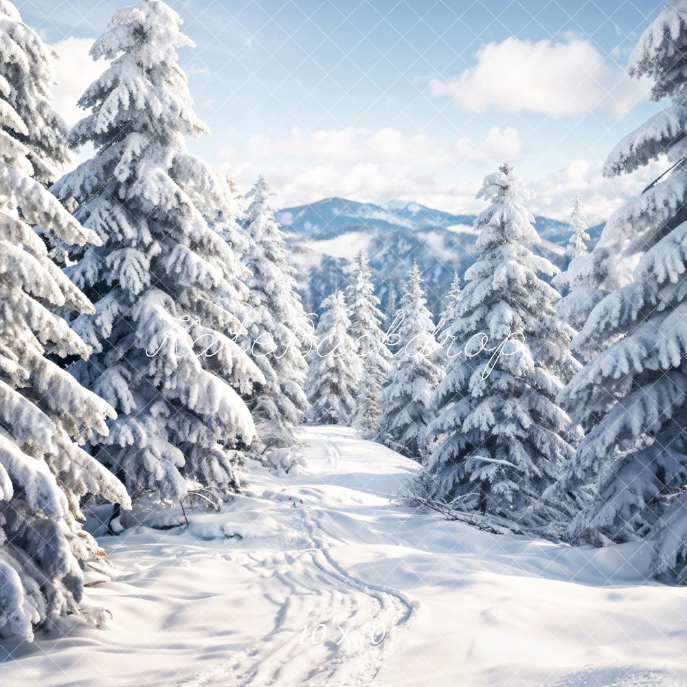 Kate Winter Outdoor White Forest Snowland Backdrop Designed by Chain Photography