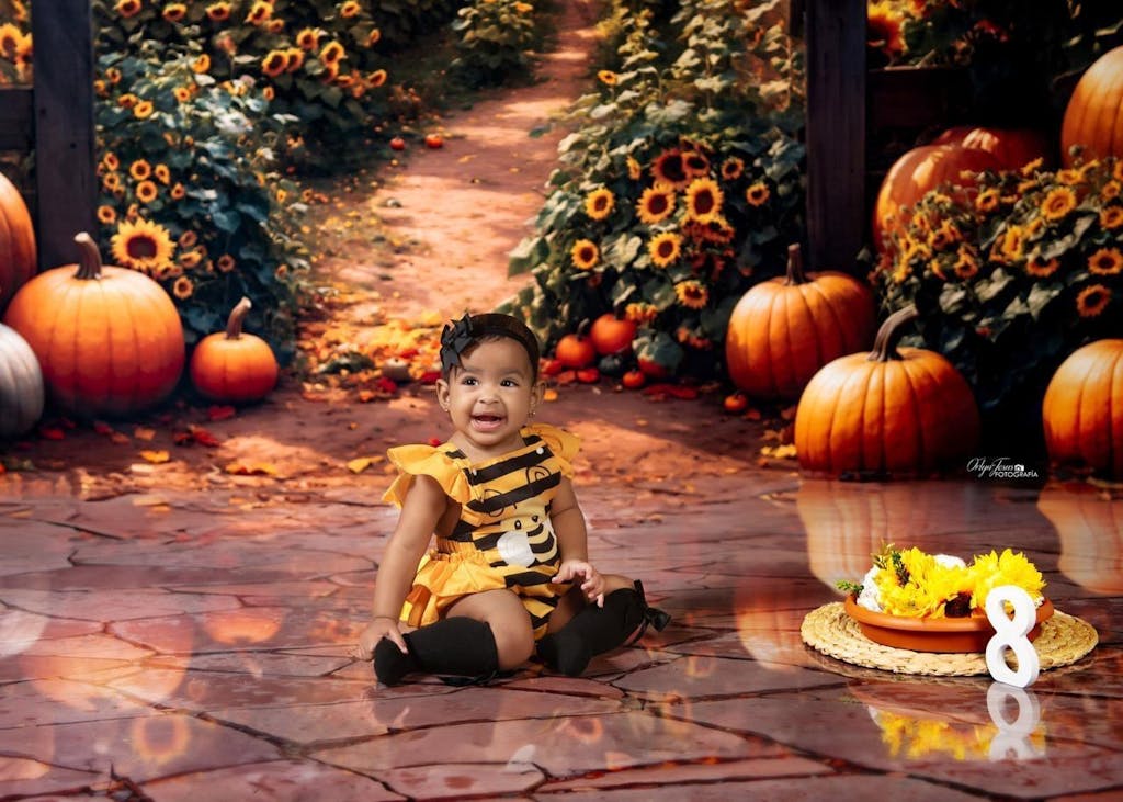 Capture the warm essence of fall with the Autumn Sunflower Pumpkin Patch Backdrop. This vibrant backdrop combines golden sunflowers, ripe pumpkins, and rustic farm elements, perfect for seasonal portraits and festive photo shoots. Enhance your photography with the rich autumn colors and cozy outdoor vibe.