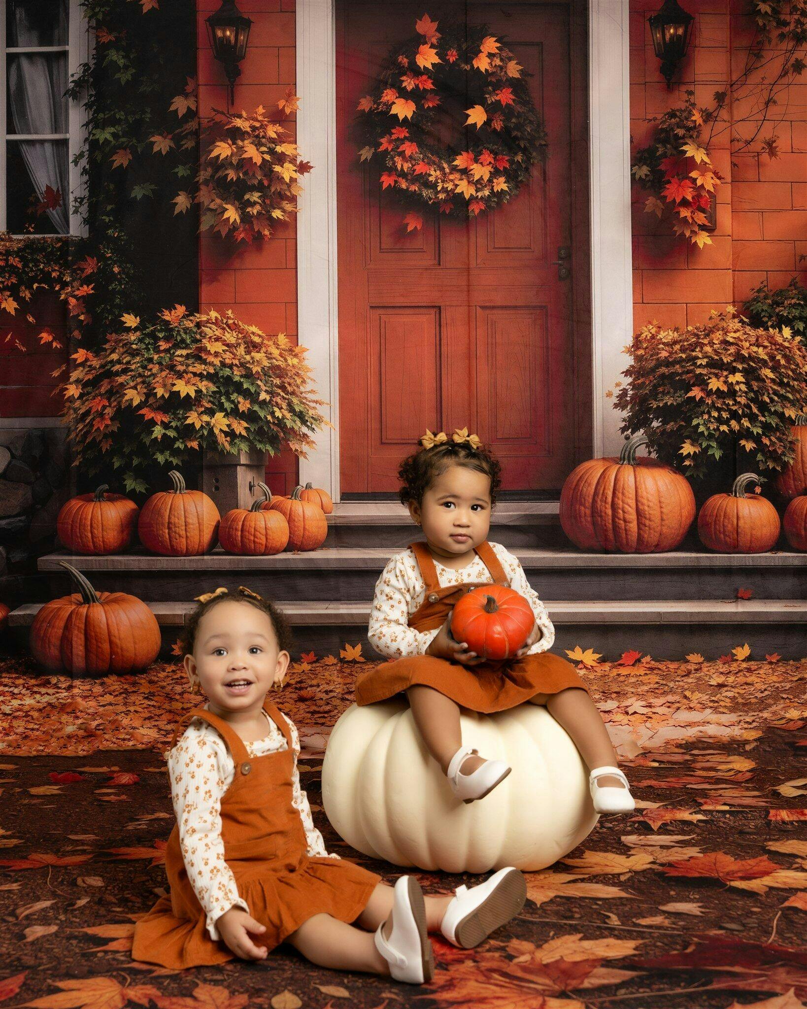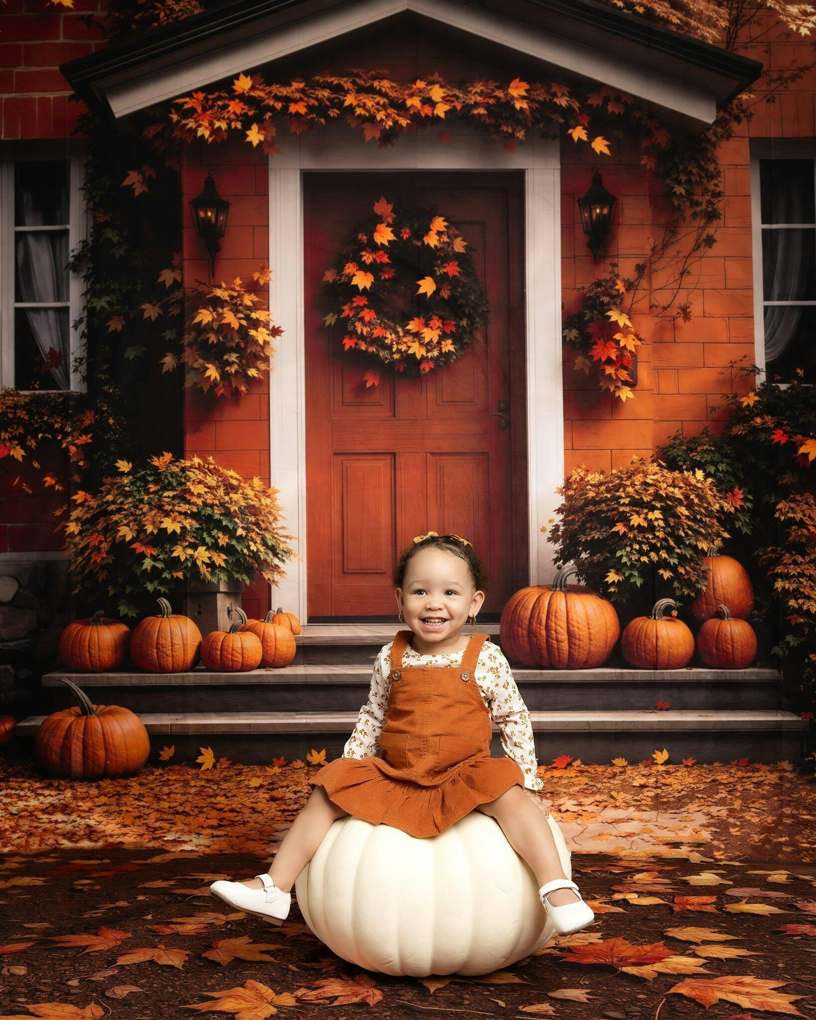Kate Fall Pumpkin House Doorway Maple Leaves Backdrop Designed by Emetselch