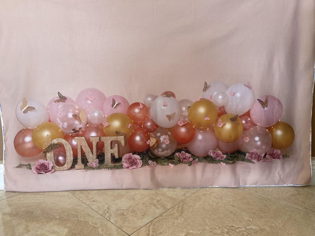 Kate Birthday Cake Smash Balloon with Butterfly Backdrop for Photography Designed by Cassie Christiansen Photography