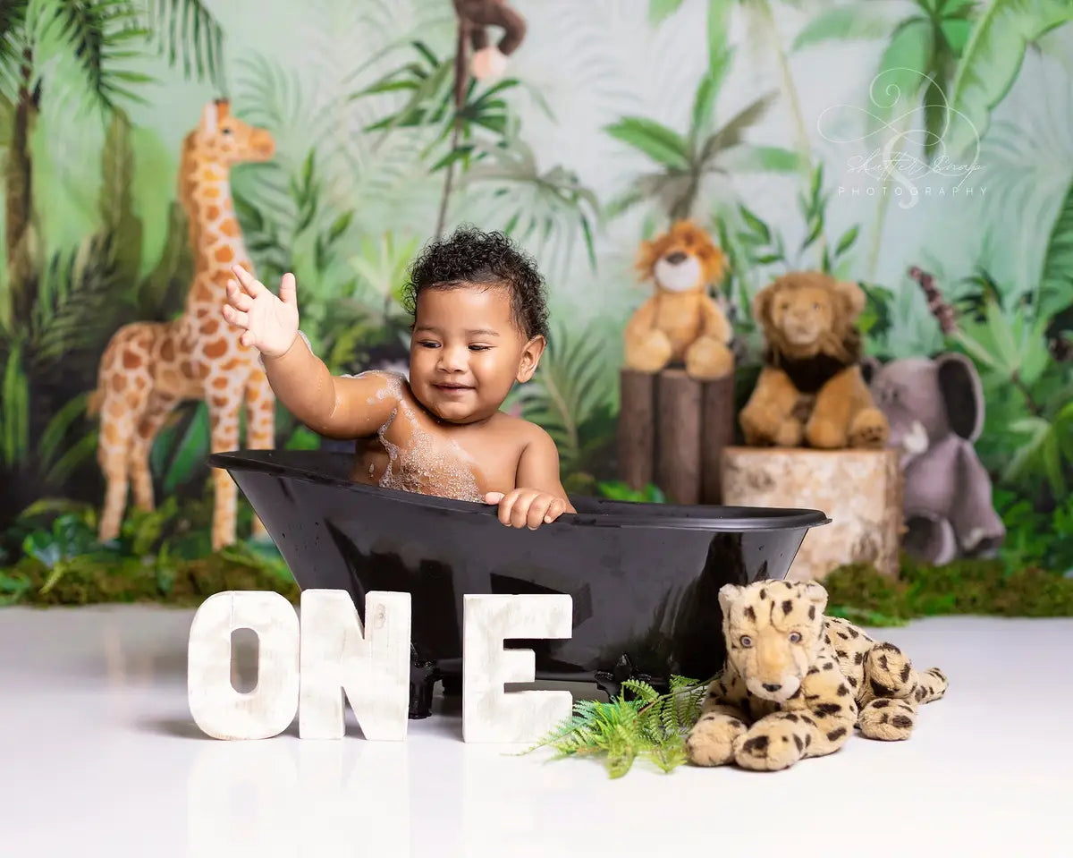 Kate Cake Smash Backdrop Birthday Jungle Animals Designed by Emetselch
