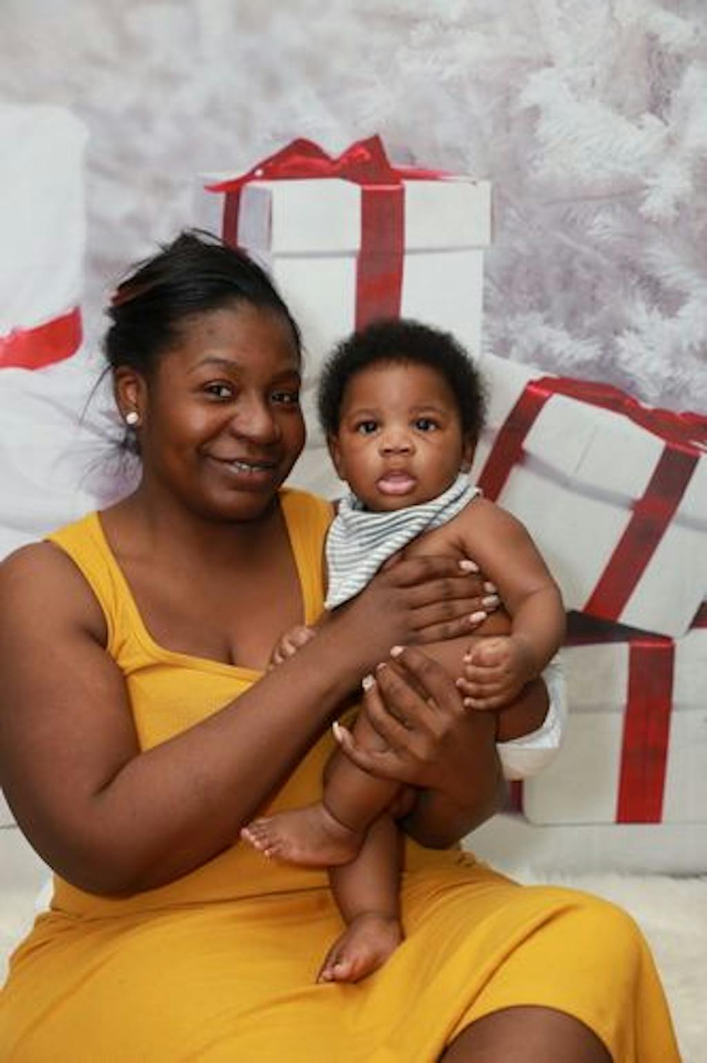 Create a festive and elegant scene with the White Winter Holiday Gift Backdrop. Featuring pristine white trees and beautifully wrapped presents with red ribbons, this backdrop adds a magical winter atmosphere perfect for holiday portraits, seasonal events, and celebrations. Ideal for capturing memorable moments in style.