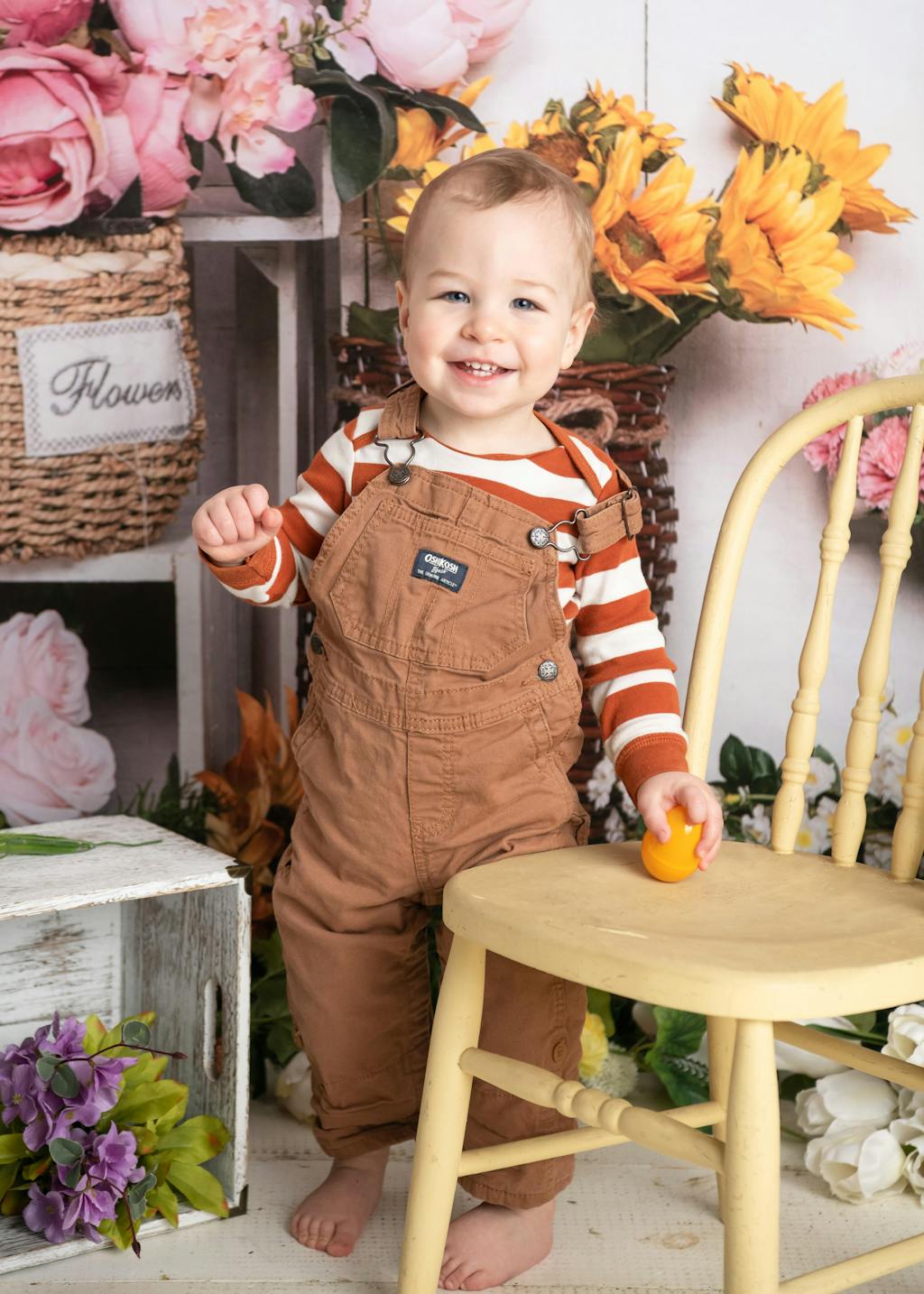 Enhance your photos with the charming and vibrant Rustic Floral Garden Vintage Backdrop. Featuring an array of sunflowers, roses, and greenery against a stylish whitewashed brick wall, this backdrop creates a warm and inviting atmosphere perfect for portrait photography and creative shoots.
