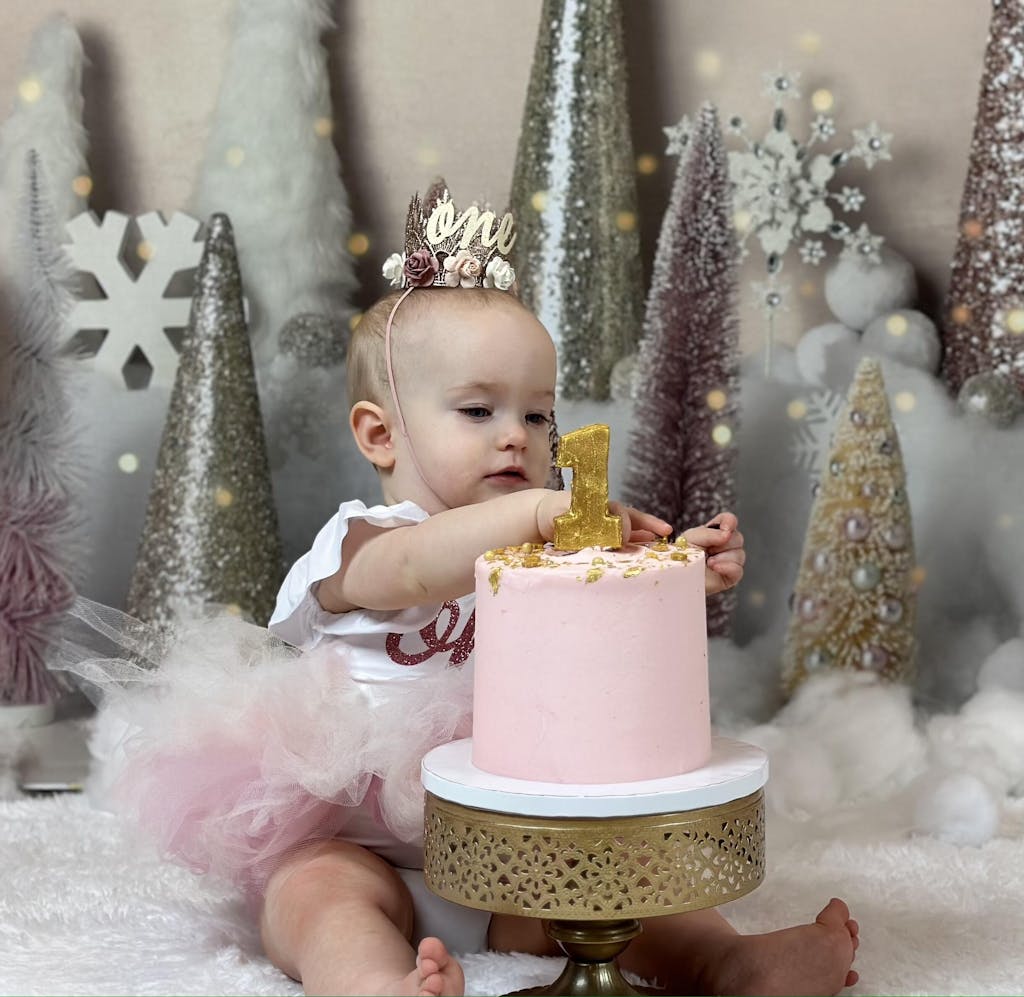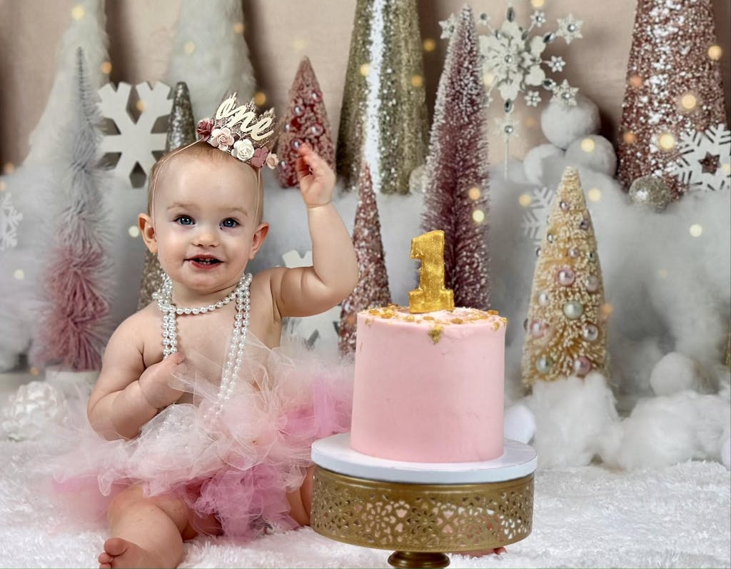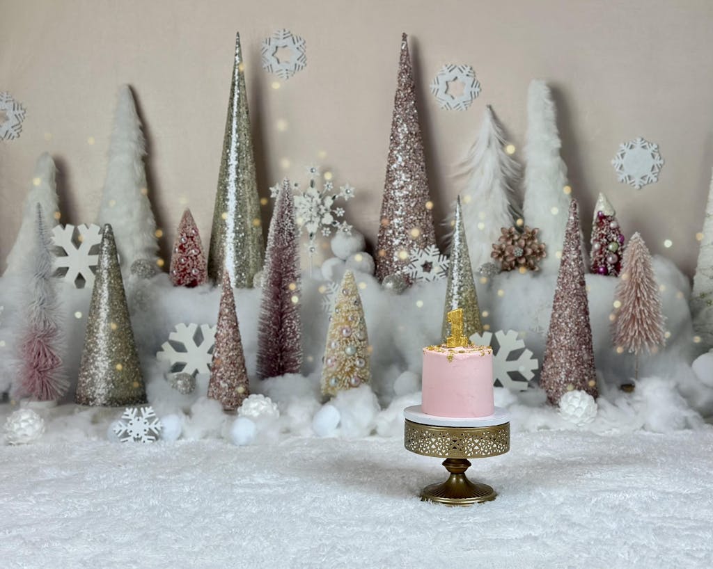 Kate New Year Pink and Gold Wonderland Glitter Trees Backdrop Designed by Mandy Ringe Photography
