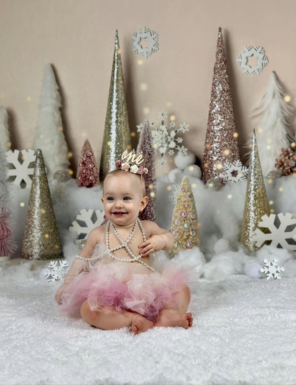 Capture festive moments with the Sparkling Winter Woodland Holiday Backdrop, featuring shimmering cones and delicate snowflakes that evoke a magical winter wonderland. Perfect for holiday portraits, this backdrop adds a warm, elegant touch to seasonal photo sessions with its soft beige tones and glitter accents.