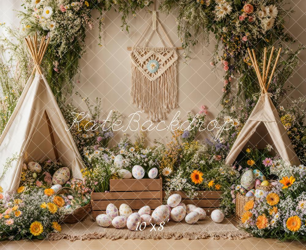 Kate Easter Boho Floral Teepee Eggs Backdrop Designed by Emetselch