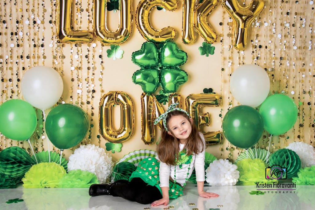 Kate St. Patrick's Day Green Clover Lucky One Balloon Printed Backdrop Designed by Mandy Ringe Photography