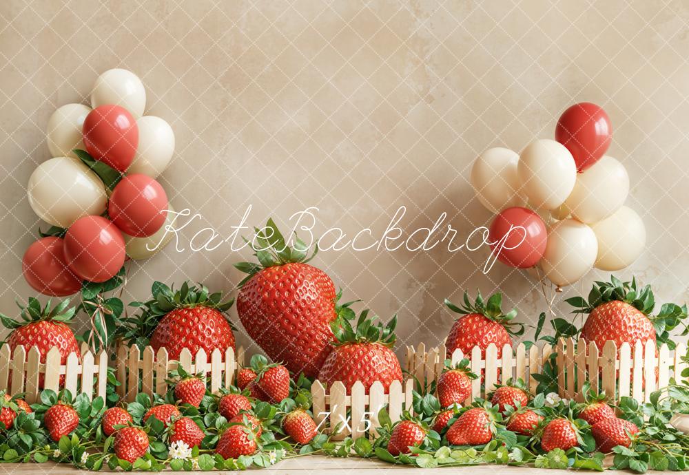 Kate Cake Smash Strawberry Balloon Fence Garden Backdrop Designed by Emetselch
