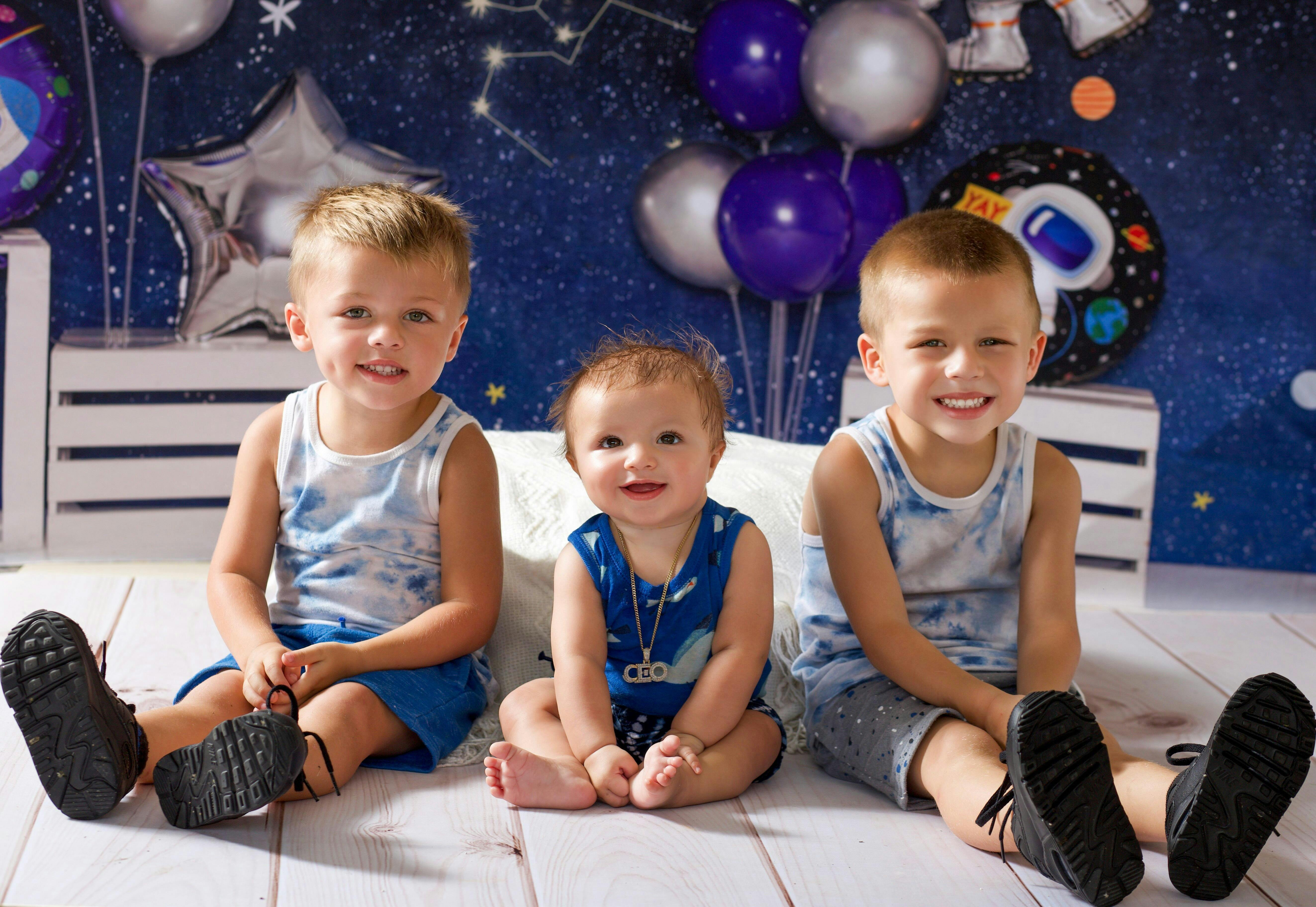 Transform your photography sessions with the Galactic Night Space Adventure Backdrop. This unique, star-studded design features vibrant cosmic elements and playful astronaut balloons, perfect for creating an immersive outer-space ambiance that captivates and inspires creativity in every shot.