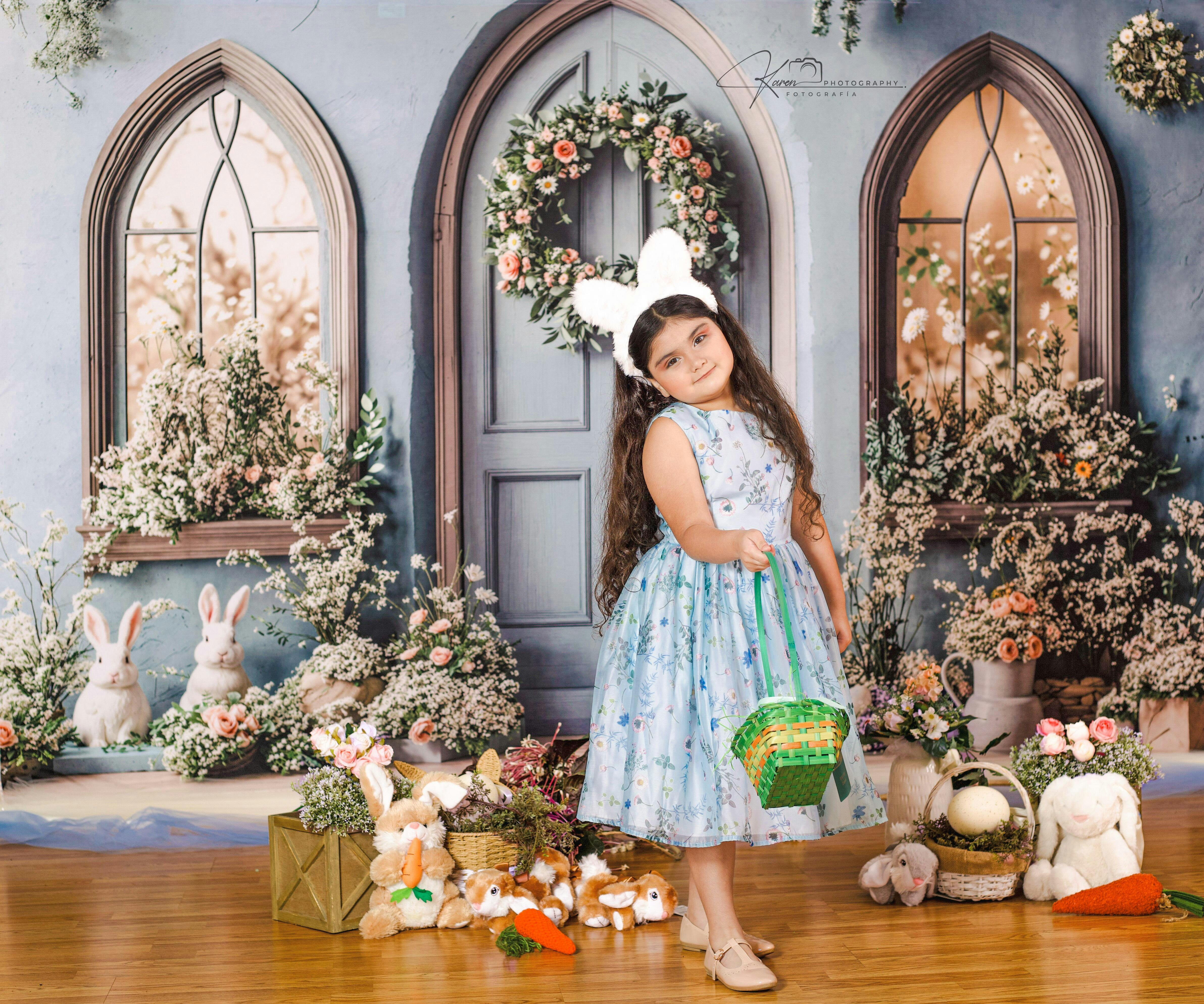 Kate Easter Bunny Floral Blue Door Backdrop Designed by Emetselch