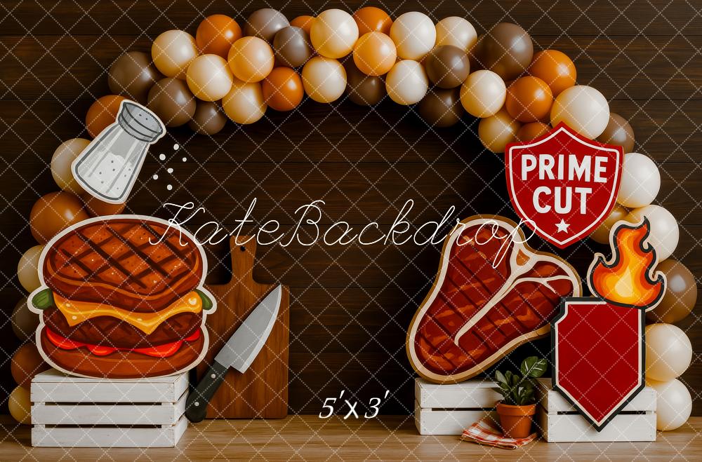 Kate Cake Smash BBQ Burger Steak Balloon Backdrop Designed by Patty Roberts