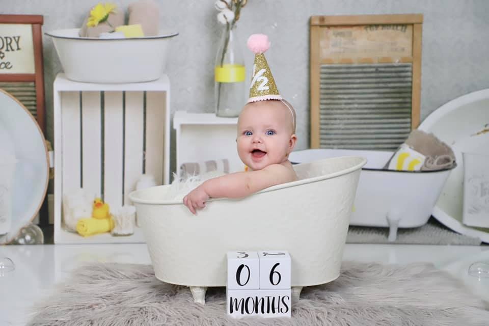 Kate Summer Baby Girl Bath Time Backdrop for Photography Designed by Erin Larkins