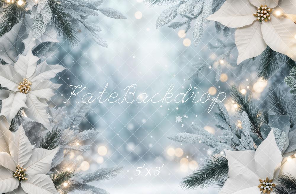 Enhance your photography with the Winter Elegance Frosted Floral Backdrop, featuring delicate white poinsettias and soft frosted pine branches. This backdrop brings a magical winter ambiance perfect for holiday portraits and festive events. Ideal for creating stunning, serene winter-themed photos.