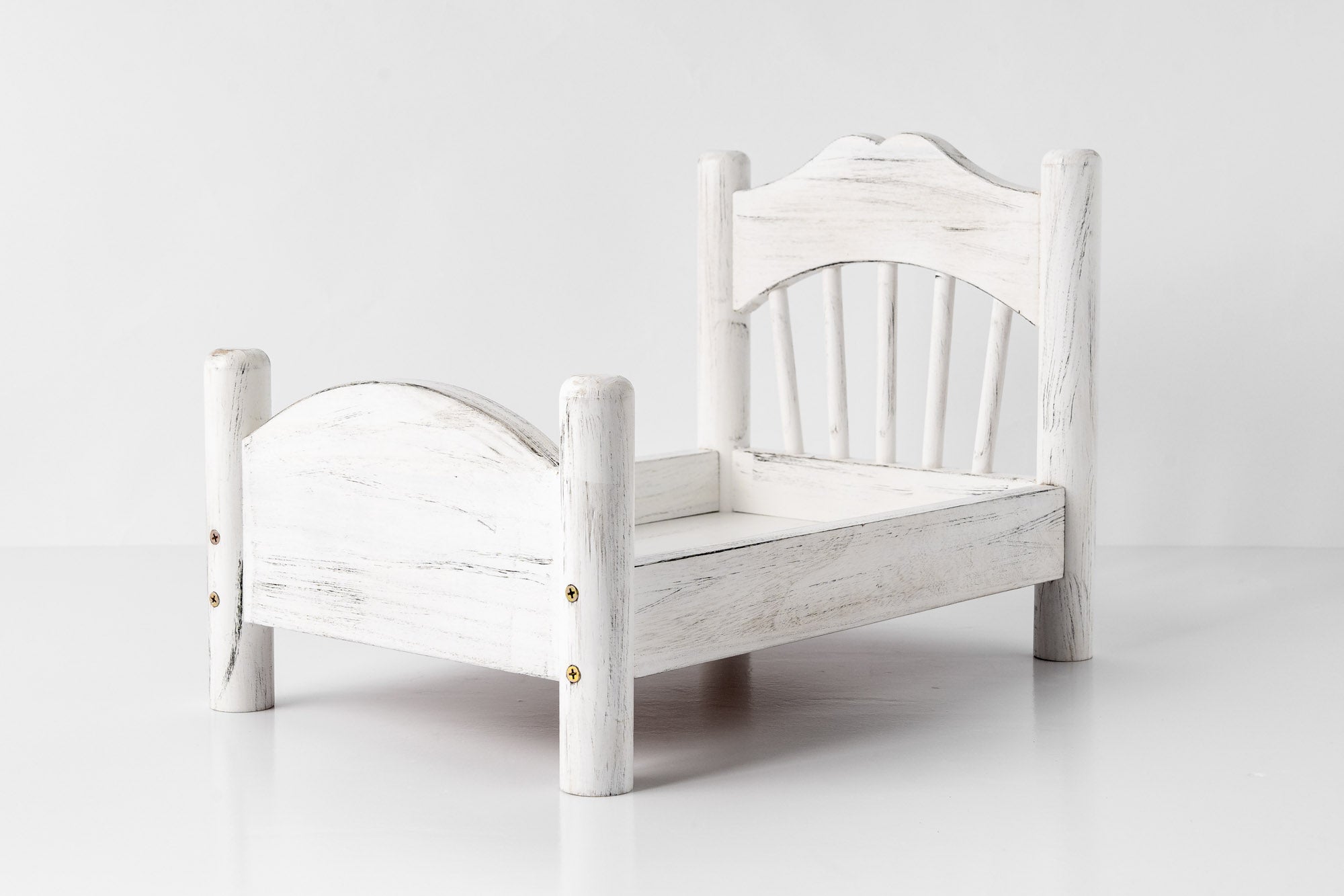 Recreaciones Fotográficas de Cama de Madera Antigua para Recién Nacidos
