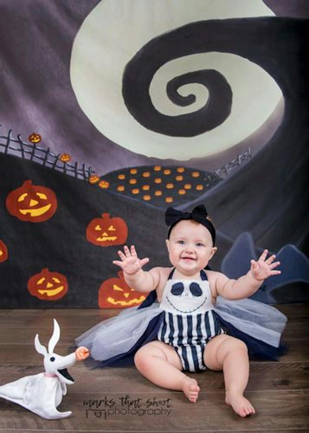 Set an eerie and festive mood with the Spooky Halloween Night Pumpkin Backdrop. Featuring glowing jack-o'-lanterns under a giant full moon and a haunting curled hill, this backdrop is perfect for Halloween-themed photo shoots and events that need a chilling atmosphere.