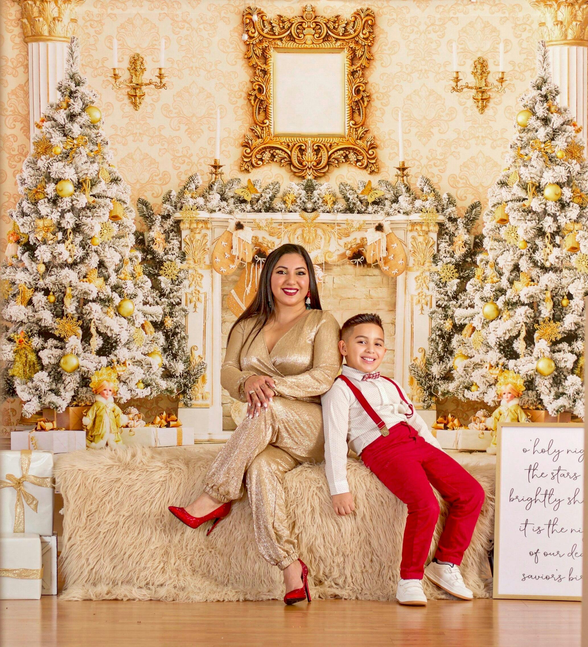 Fondo de Chimenea de Oro Elegante para Fotografía Navideña