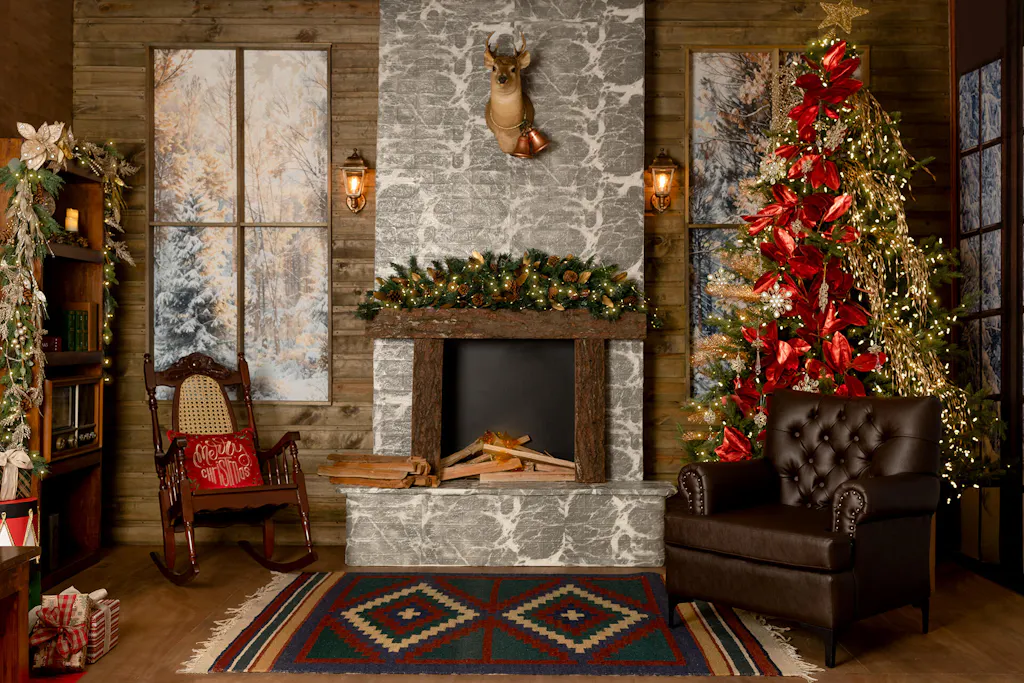 Fondo de bosque de pinos al aire libre para Navidad en invierno diseñado por Chain Photography