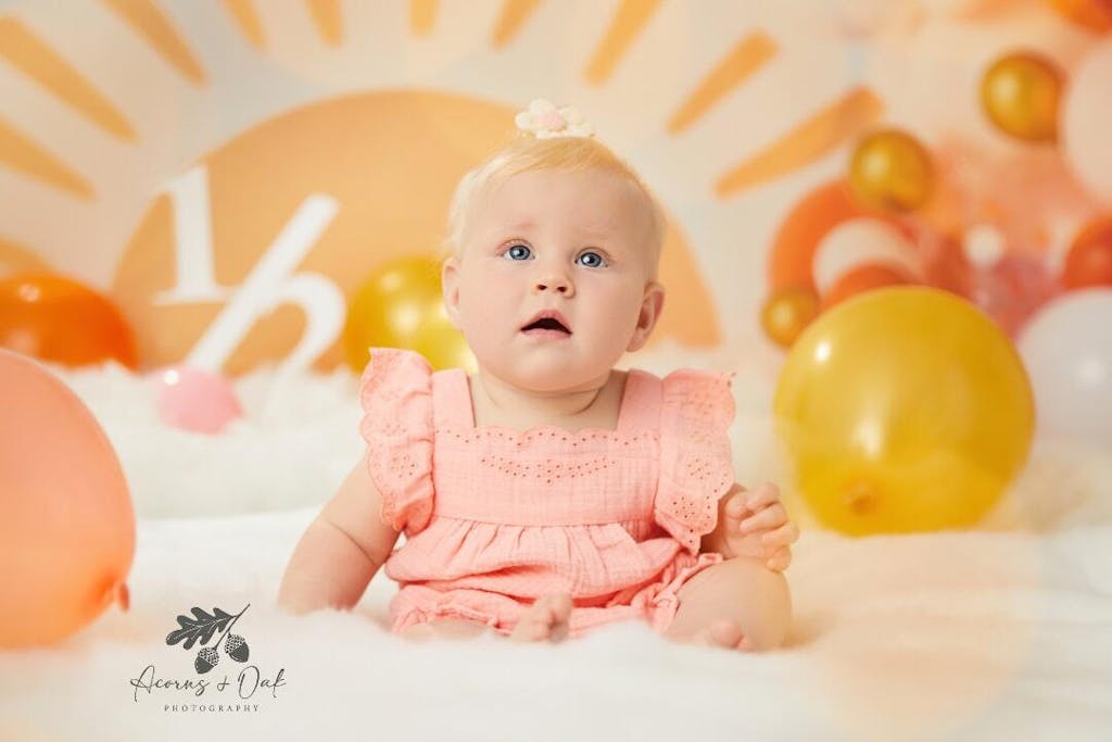 Enhance your events with the vibrant and whimsical Sunrise Balloon Arch Cloud Backdrop. Featuring a cheerful sunrise design surrounded by a colorful balloon garland and fluffy clouds, this backdrop creates a perfect setting for joyful portrait sessions and celebrations. Ideal for adding a warm, festive atmosphere to any occasion.