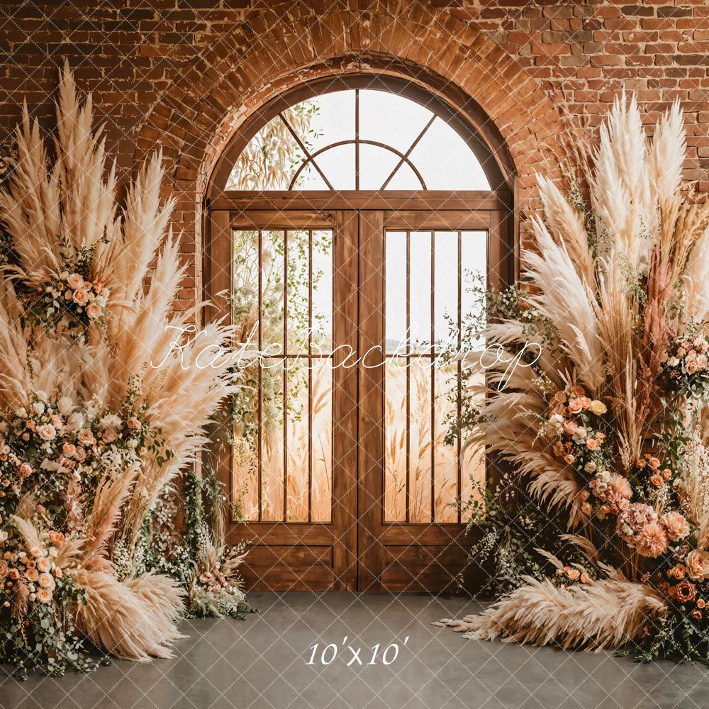 Elevate your photography with the Rustic Boho Pampas Grass Archway Backdrop, featuring warm natural tones and a charming brick wall design. Perfect for adding an elegant, earthy vibe to your portraits, this backdrop beautifully blends pampas grass and floral accents for a soft, bohemian aesthetic.