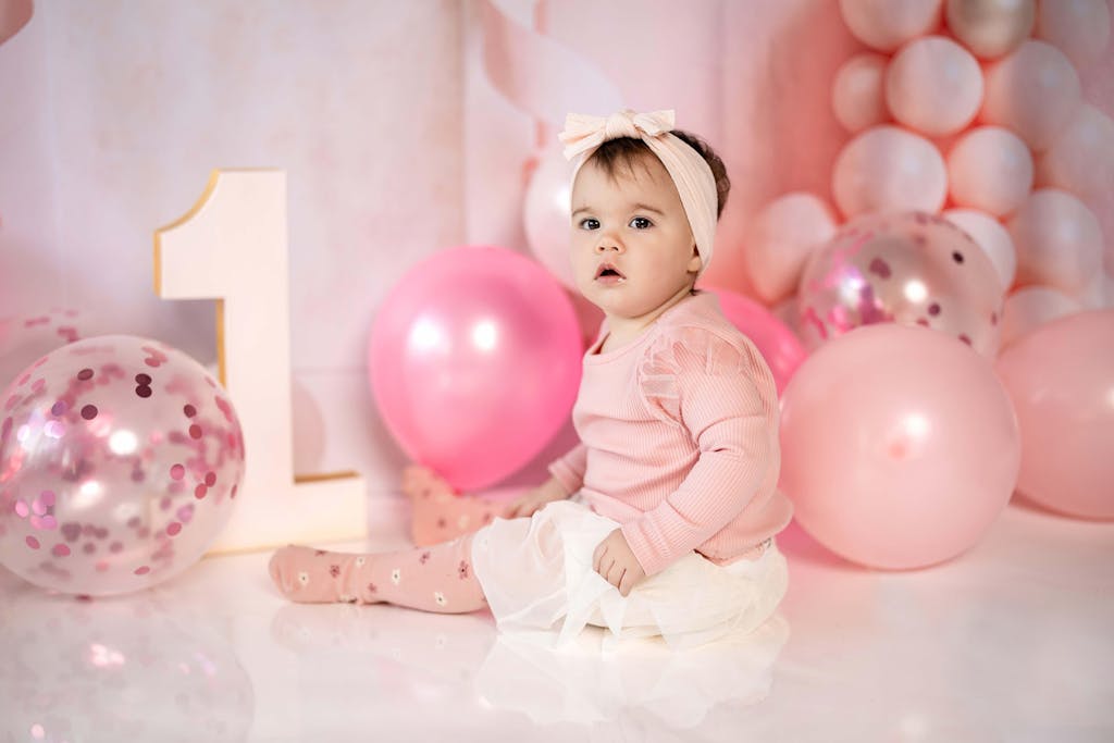 Fondo de globo rosa de Kate Cake Smash Bow diseñado por Ashley Paul