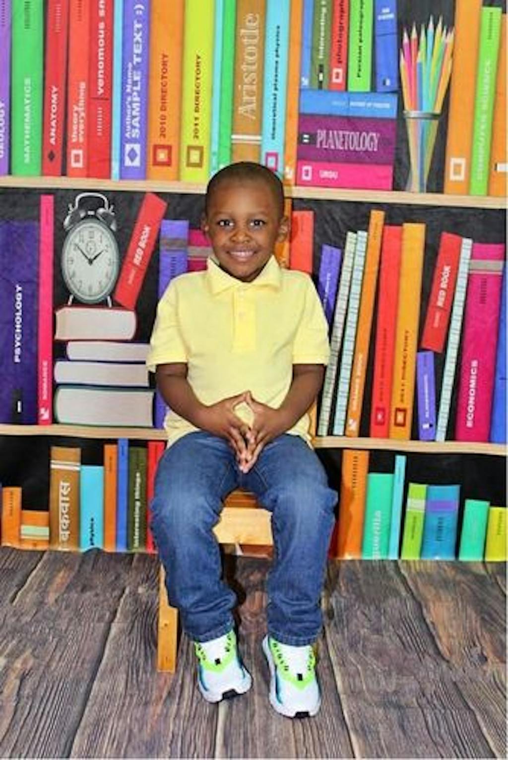 Estantería de Libros para Regreso a Clases/Graduación - Reloj Despertador - Fotografía de Libros Coloridos para Niños