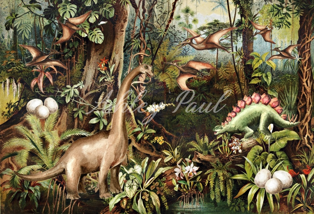 Transport your portraits to a lush, prehistoric era with the Vintage Prehistoric Dinosaur Jungle Backdrop. Featuring detailed dinosaurs and dense tropical foliage, this backdrop creates an immersive, vibrant atmosphere perfect for unique photo shoots and creative projects.
