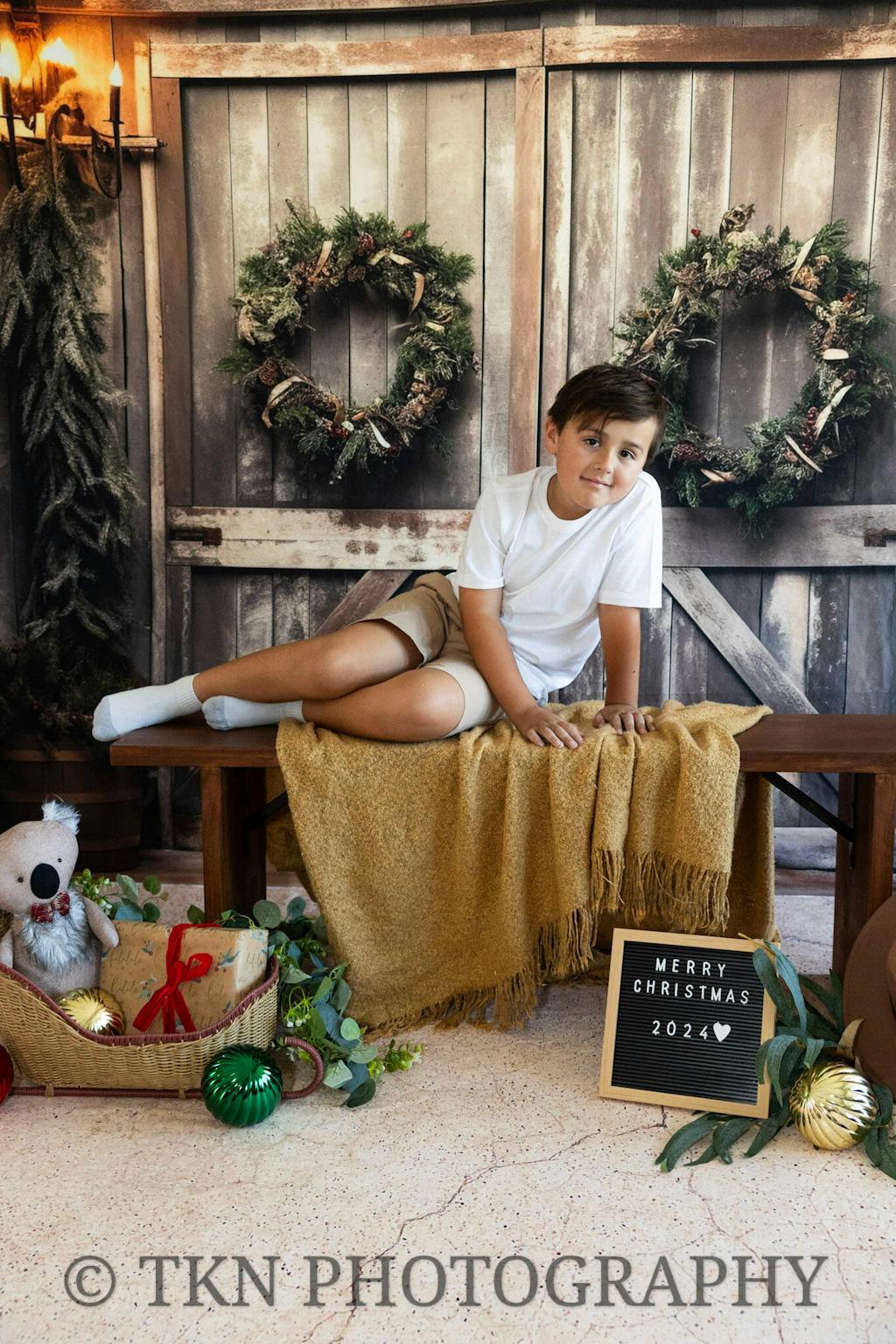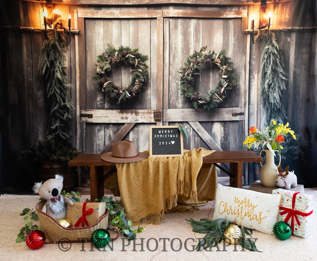 Sfondo porta vecchia della stalla per fotografie natalizie