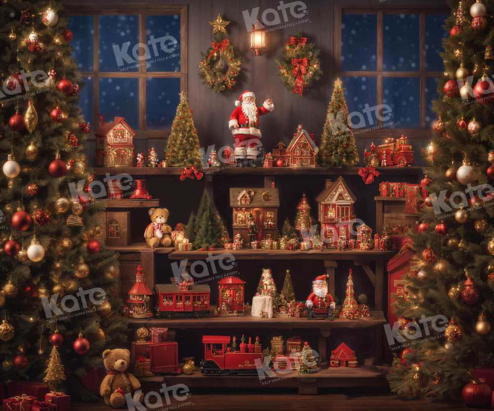 Bring festive warmth to your photos with the Cozy Vintage Christmas Holiday Display backdrop. Featuring charming miniature holiday decorations, Santa figurines, and sparkling Christmas trees, this backdrop enhances seasonal portraits with nostalgic and merry vibes, perfect for capturing unforgettable holiday moments.