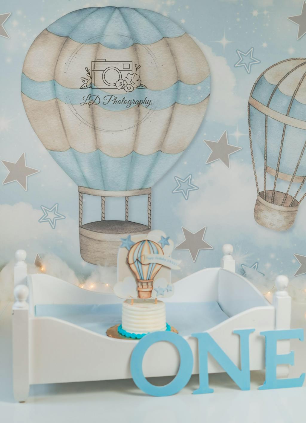 Elevate your photos with the whimsical charm of the Dreamy Blue Sky Hot Air Balloon Backdrop. Featuring soft clouds, dreamy stars, and pastel balloons, this backdrop creates a magical setting perfect for newborns, kids, and fantasy-themed portraits. Add a sky-high touch to your photo shoots effortlessly.