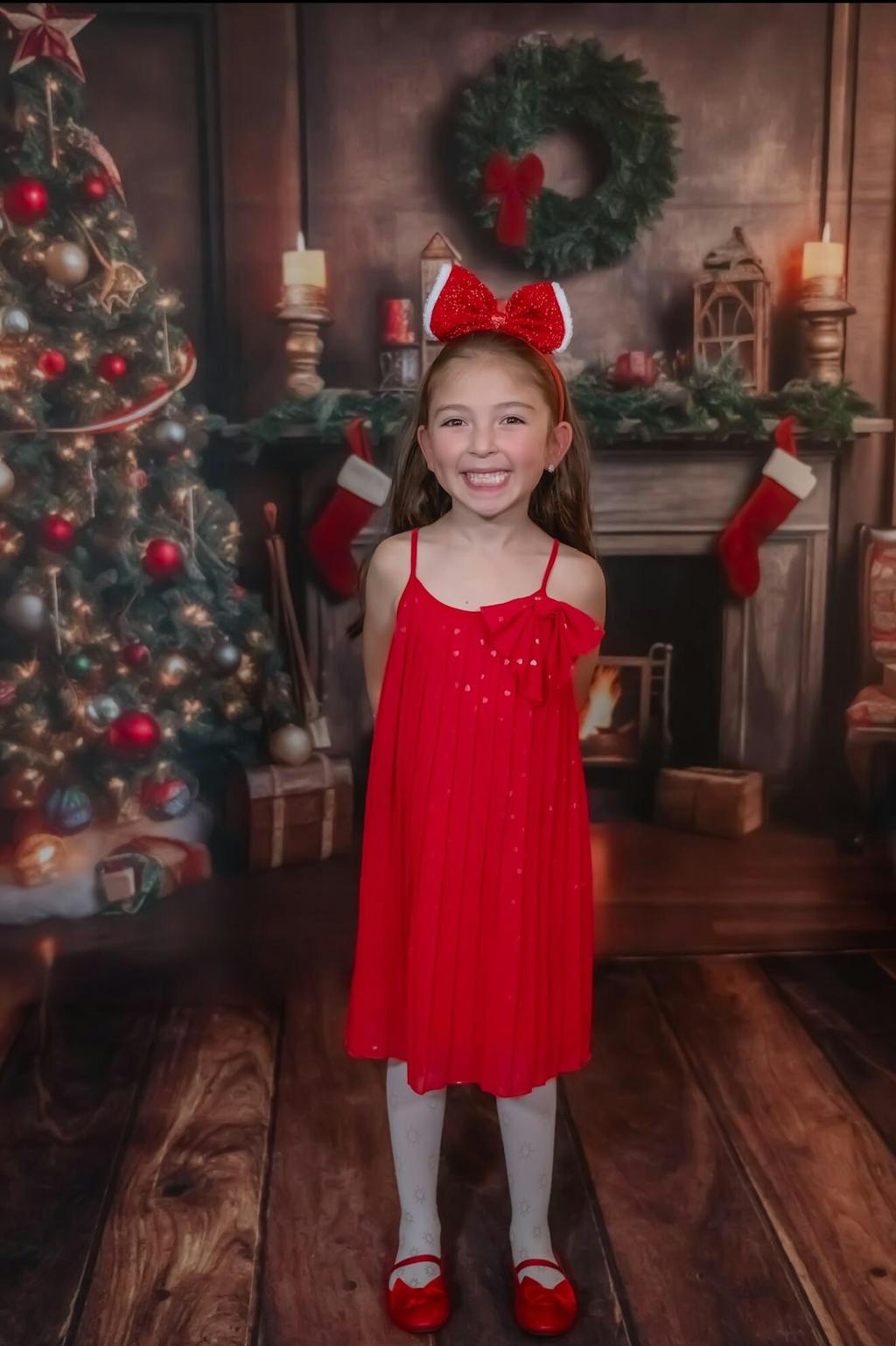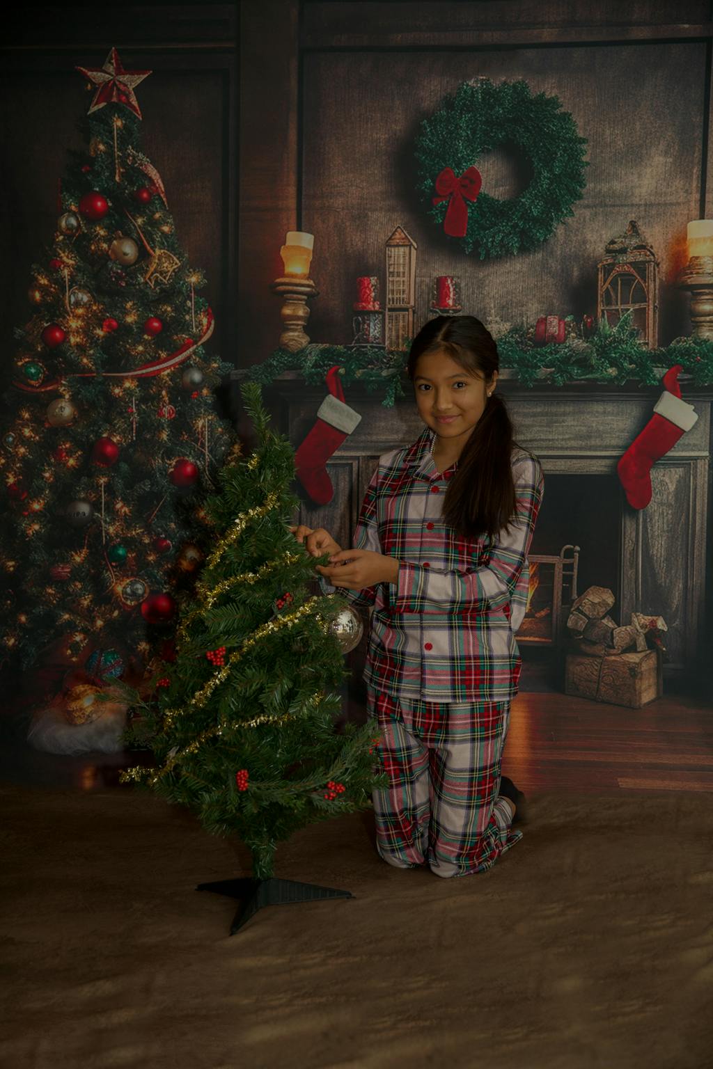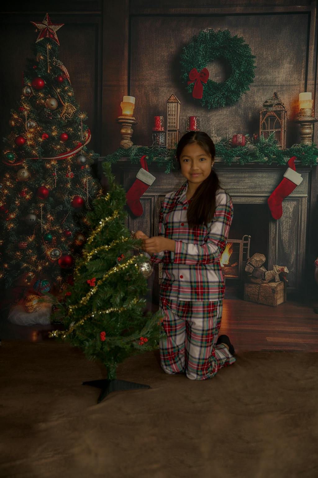 Create warm holiday memories with the Cozy Classic Christmas Fireplace Backdrop. Featuring a beautifully decorated Christmas tree, a glowing fireplace, and festive stockings, this backdrop brings timeless Christmas charm to your seasonal portraits and photography sessions.