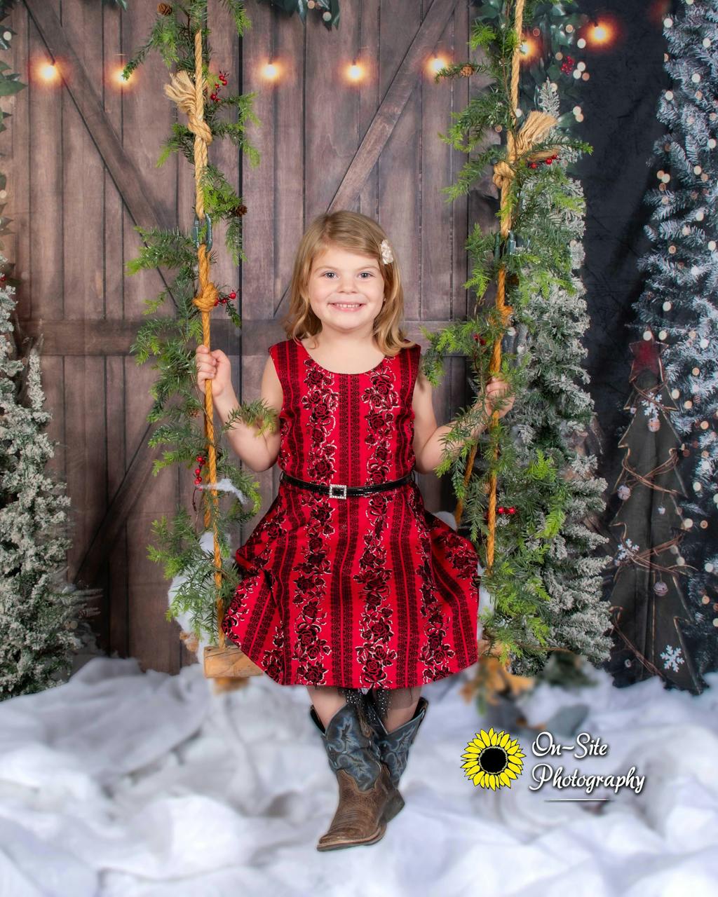 Create a cozy festive atmosphere with the Rustic Christmas Woodland Holiday Backdrop. This charming backdrop features wooden barn doors surrounded by snow-dusted pine trees and warm glowing lights, perfect for capturing magical holiday portraits. Enhance your seasonal photos with this enchanting winter wonderland scene.