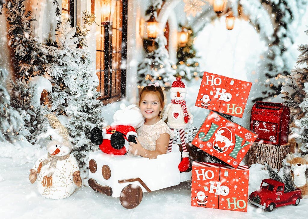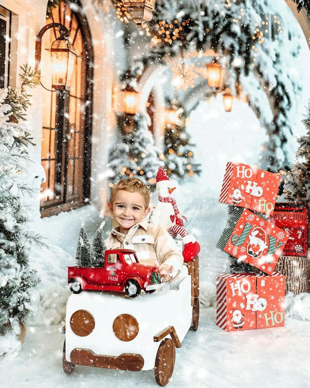 Capture the magic of a serene snowy evening with the Winter Wonderland Illuminated Archway Backdrop. This enchanting design features glowing lanterns and frosted evergreens, perfect for adding a warm, festive ambiance to your photography sessions, ideal for holiday portraits and winter-themed events.