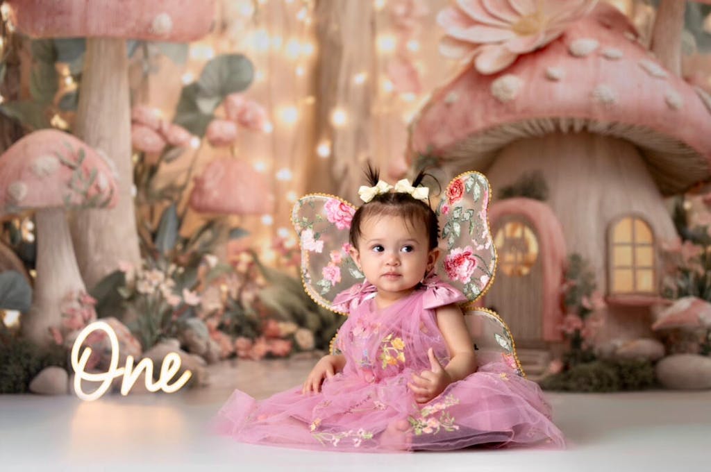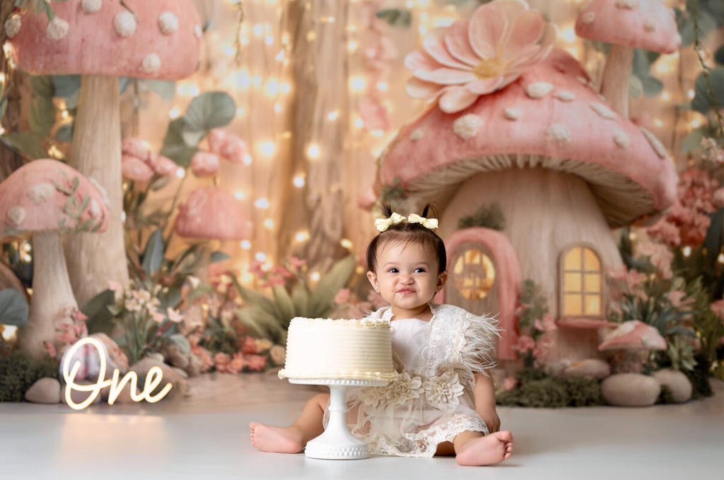 Fairy Fantasy Paddenstoelenhuis Boslichten Foto Achtergrond Designed by Ashley Paul