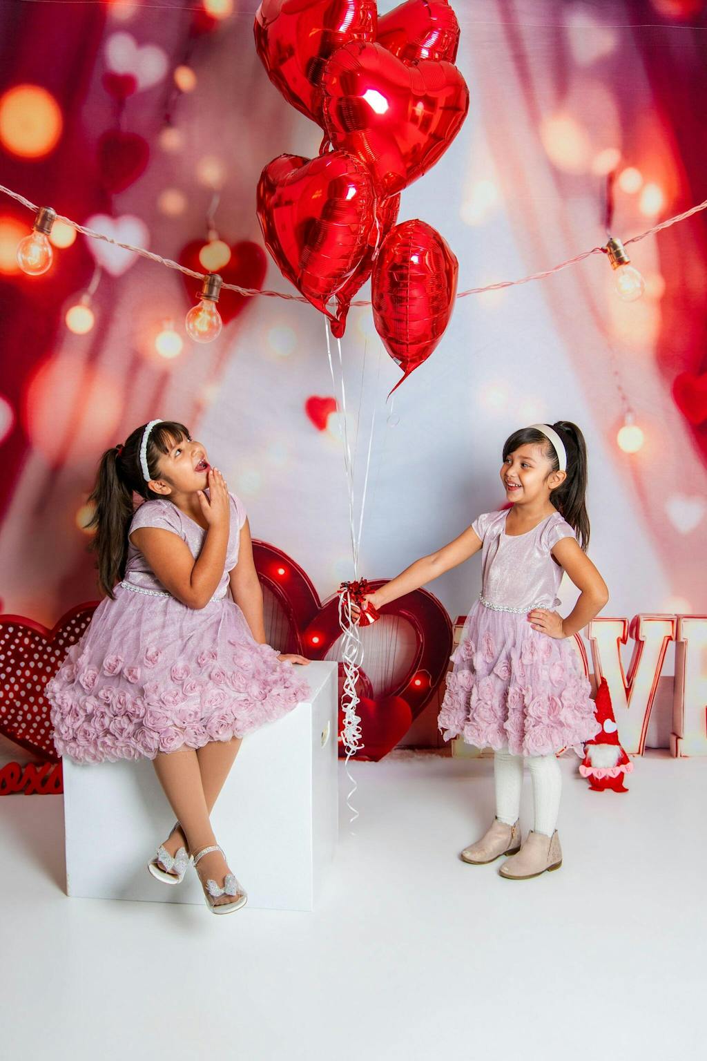 Kate Valentines Red Hearts LOVE Bokeh Lights Backdrop Designed by Emetselch