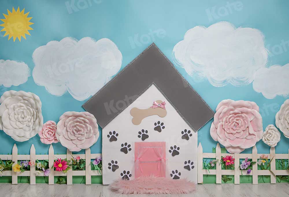 Transform your photo sessions with the charming Whimsical Pawprint Garden Backdrop Scene. Featuring a playful doghouse, fluffy clouds, and delicate floral accents, this backdrop offers a unique and inviting setting perfect for pet portraits, children’s photography, and imaginative storytelling shots.
