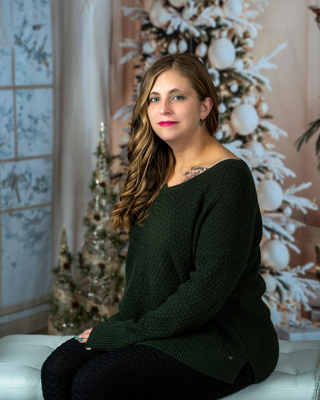 Witte Kerstboom Haard Retro Muur Vintage Boogvenster Kamer Set