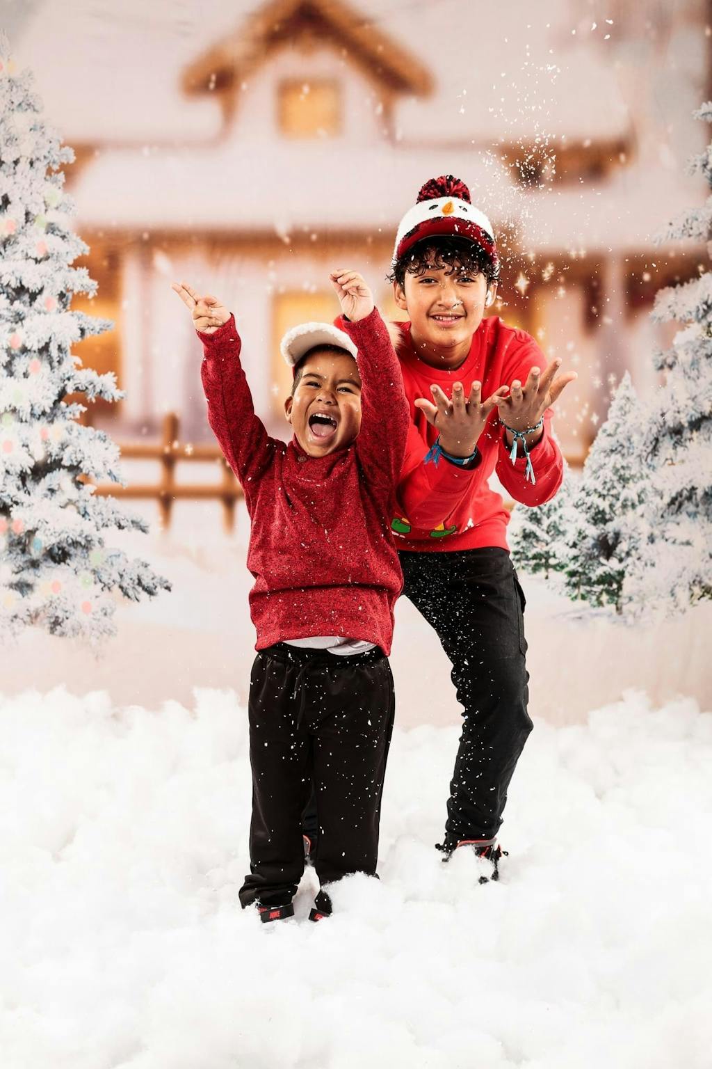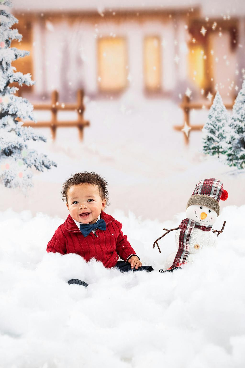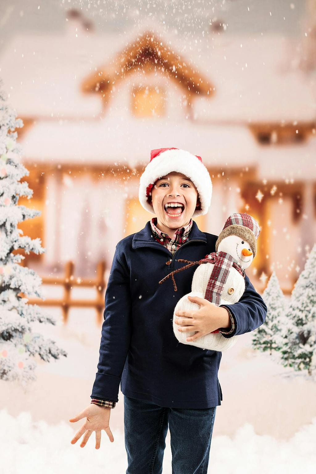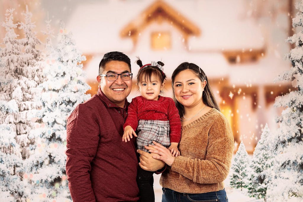 Capture the magic of the holiday season with the Snowy Winter Cottage Holiday Backdrop. This enchanting backdrop features softly falling snow, snow-covered pine trees, and a cozy cottage ambiance, perfect for creating warm and festive portraits during winter and holiday photography sessions.