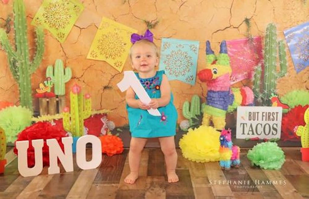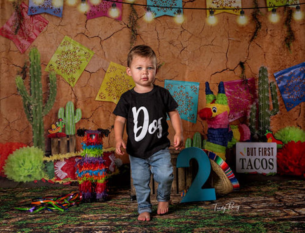 Celebrate every special moment with the vibrant and colorful Festive Mexican Fiesta Party Backdrop. Perfect for lively events and photo shoots, this backdrop features traditional elements like papel picado banners, cacti, and a lively piñata against a rustic cracked wall design to bring a festive atmosphere to your portraits.