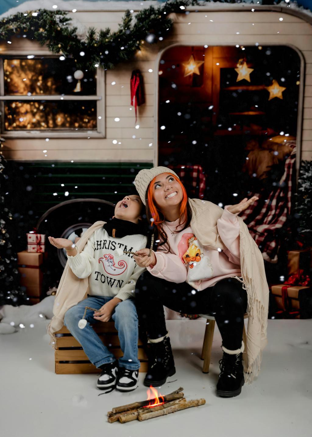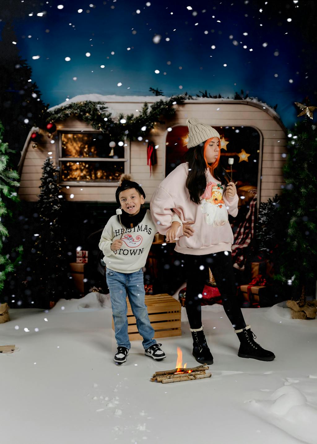 Create warm festive memories with the Cozy Holiday Camper Christmas Backdrop. This charming design features a decorated camper with glowing lights, gift boxes, and snowy accents, perfect for capturing joyful seasonal portraits. Ideal for holiday events, winter shoots, and family gatherings, this backdrop brings magical Christmas vibes to your photos.