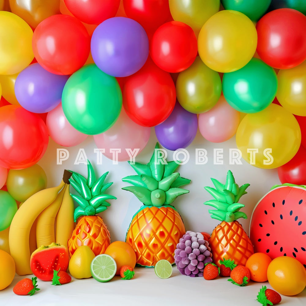 Zomer Kleurige Ballonnen Boog Vruchten Foto Achtergrond Designed by Patty Robert