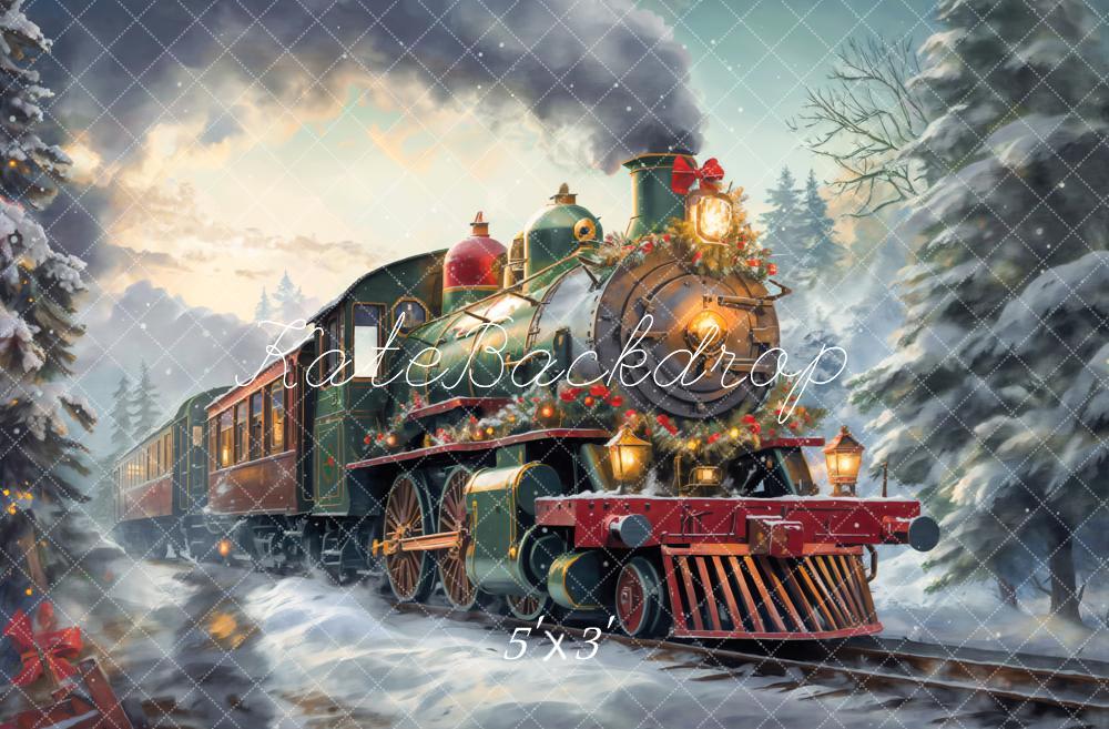 Capture magical holiday moments with the Festive Vintage Steam Train Winter Backdrop. This charming backdrop features a classic steam locomotive surrounded by a snowy forest, perfect for creating warm and nostalgic winter portraits. Ideal for seasonal photo shoots and festive celebrations.